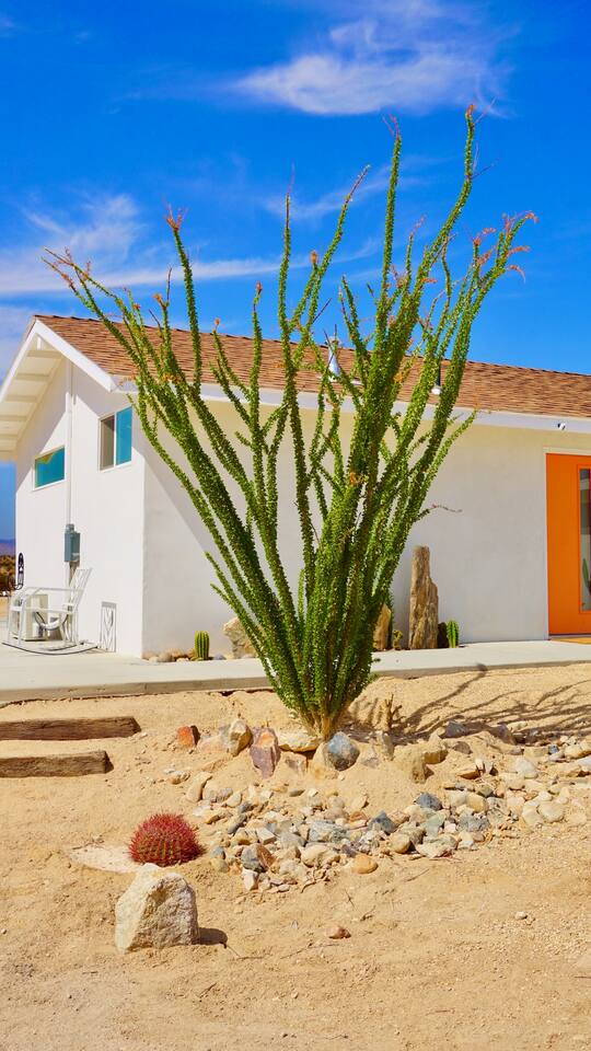 Ample parking on the property, including EV charging station. Off the paved main road, you will have to drive a few miles of graded sand road. No cars have ever had an issue navigating our roads but you will likely need a car wash when you get home! CLOSEST AIRPORTS Palm Springs, CA (PSP) – 50 miles Ontario, CA (ONT) – 100 miles Orange County, CA (JWA) – 130 miles Long Beach, CA (LGB) – 145 miles Los Angeles, CA (LAX) – 150 miles San Diego, CA (SAN) – 175 miles