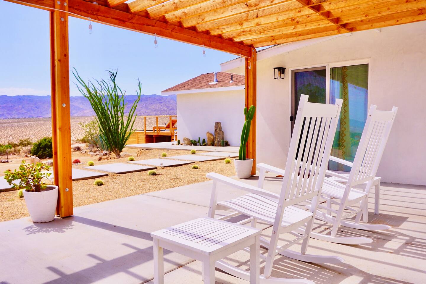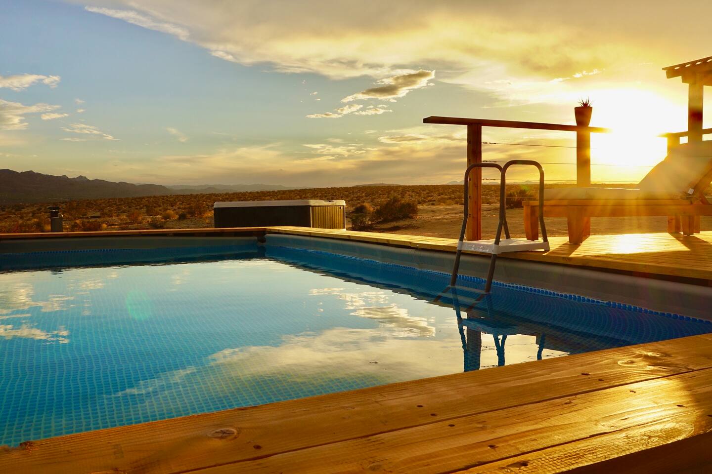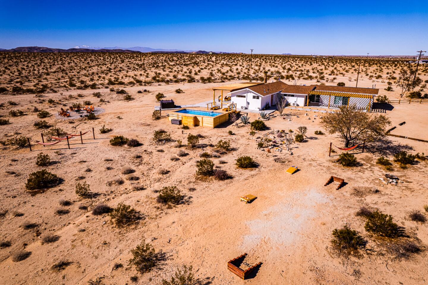 ☆ Superhosts with over 1000 5-star reviews ☆ Very remote and private but 10 minutes from town ☆ Newly renovated luxury home with 180° views of JT Nat'l Park ☆ Family friendly, our 4 bedroom, 3 bathroom house features a fully stocked chef's kitchen and outdoor amenities including pool, hot tub, fire pit, hammocks, horseshoes, corn hole, BBQ & more! ☆ 15 minutes from Joshua Tree National Park North Visitor Center ☆ Perfect, secluded retreat for families, friends and your furry pals too