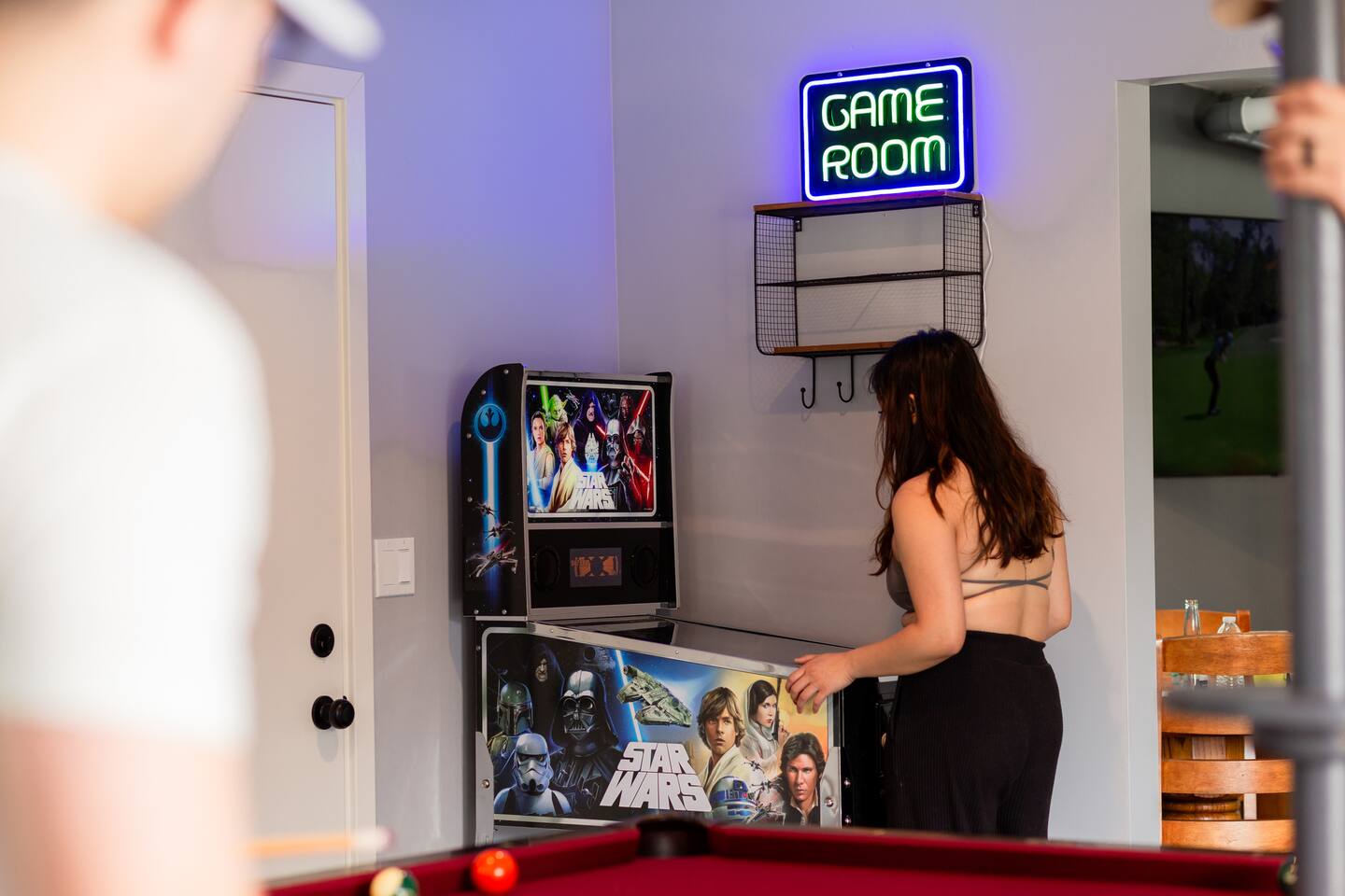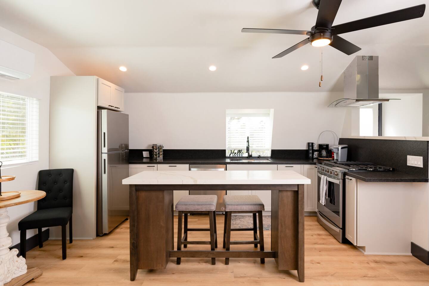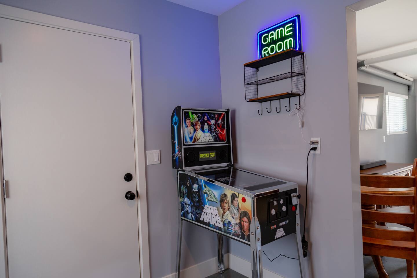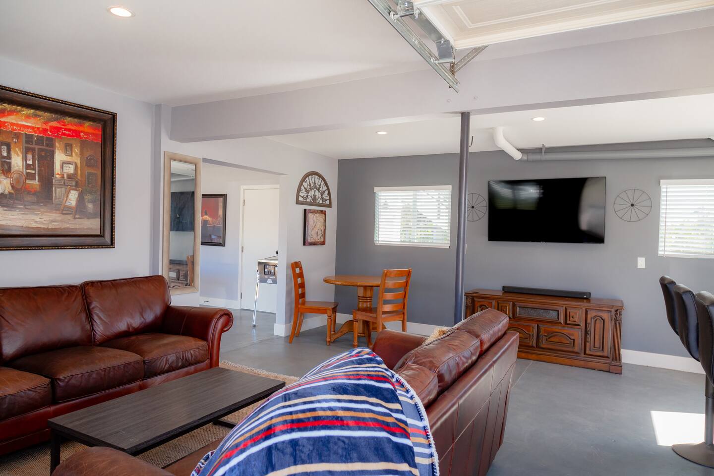 The whole house and all amenities are yours to enjoy - as well as the separate garage space that has been converted to a speakeasy bar area with a fabulous games room and separate apartment with a full kitchen, bedroom, living area, office space and bathroom. We have a huge fenced front yard that your pups are welcome to enjoy!