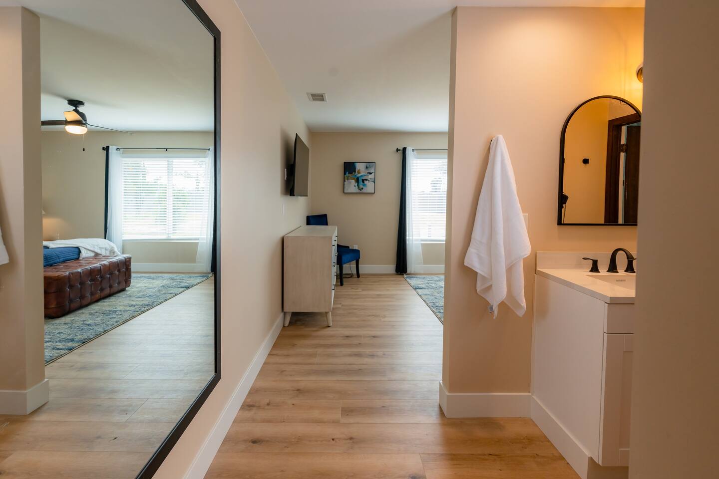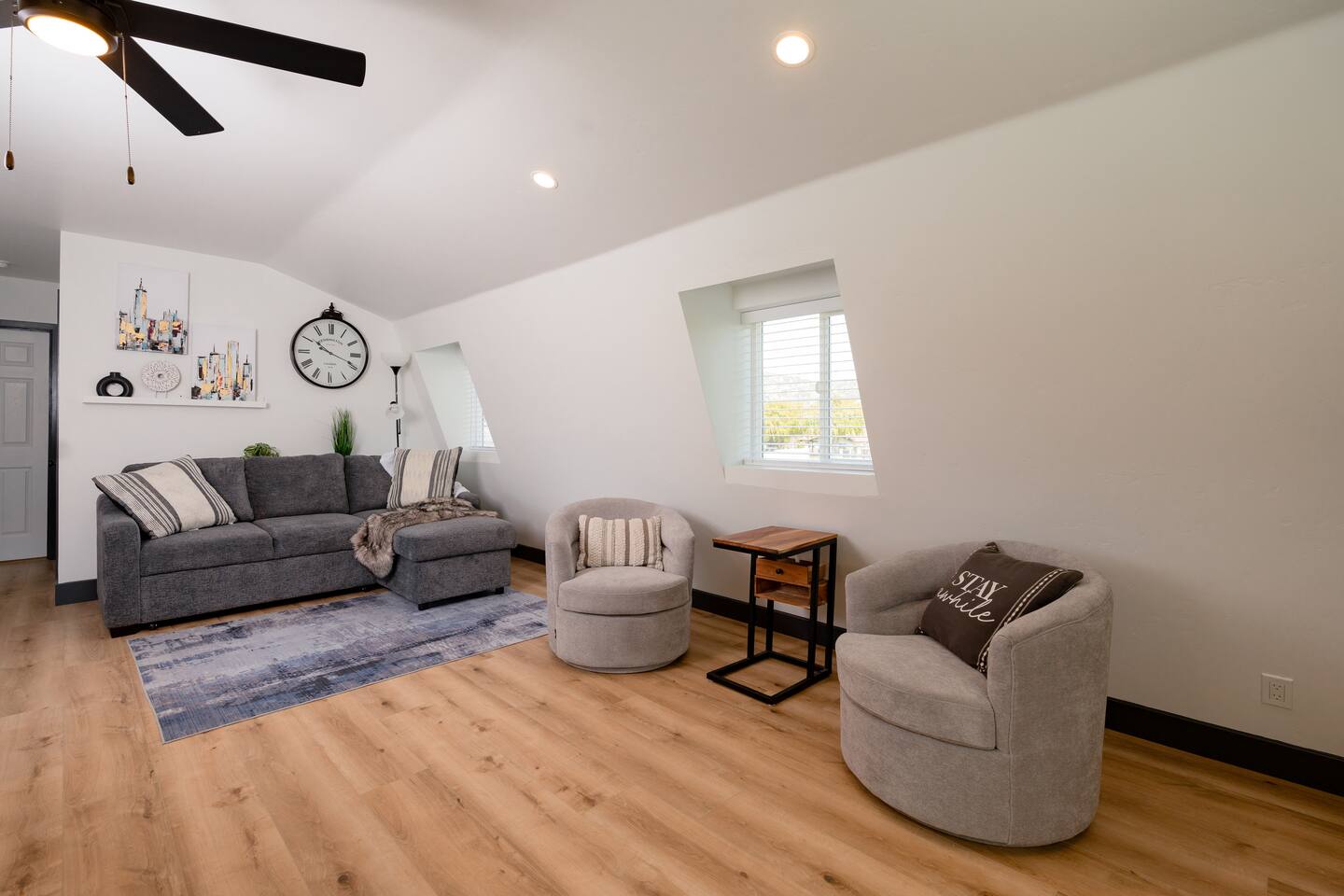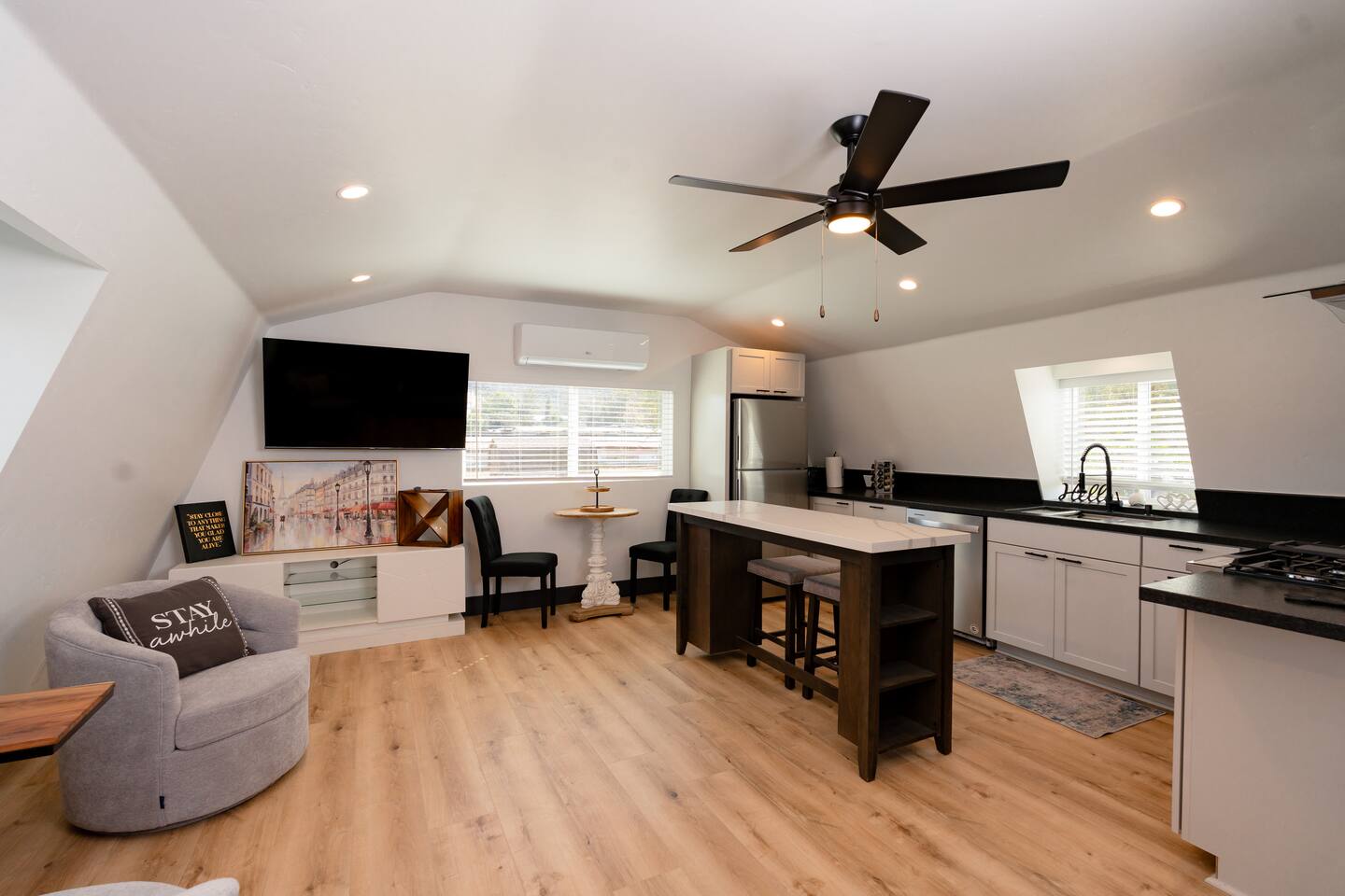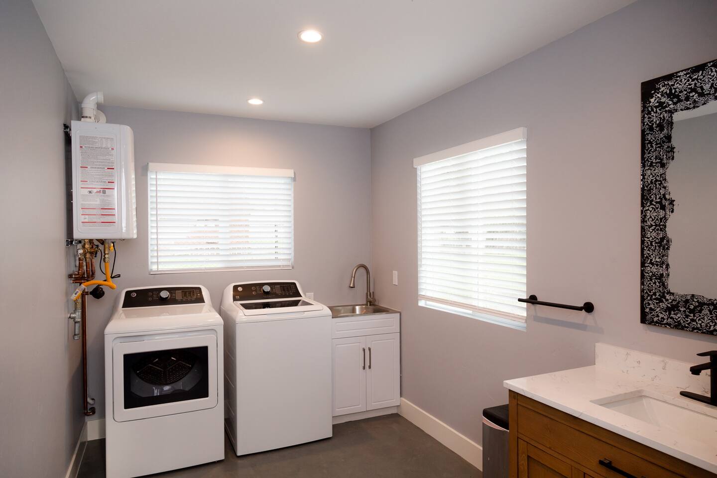 The whole house and all amenities are yours to enjoy - as well as the separate garage space that has been converted to a speakeasy bar area with a fabulous games room and separate apartment with a full kitchen, bedroom, living area, office space and bathroom. We have a huge fenced front yard that your pups are welcome to enjoy!