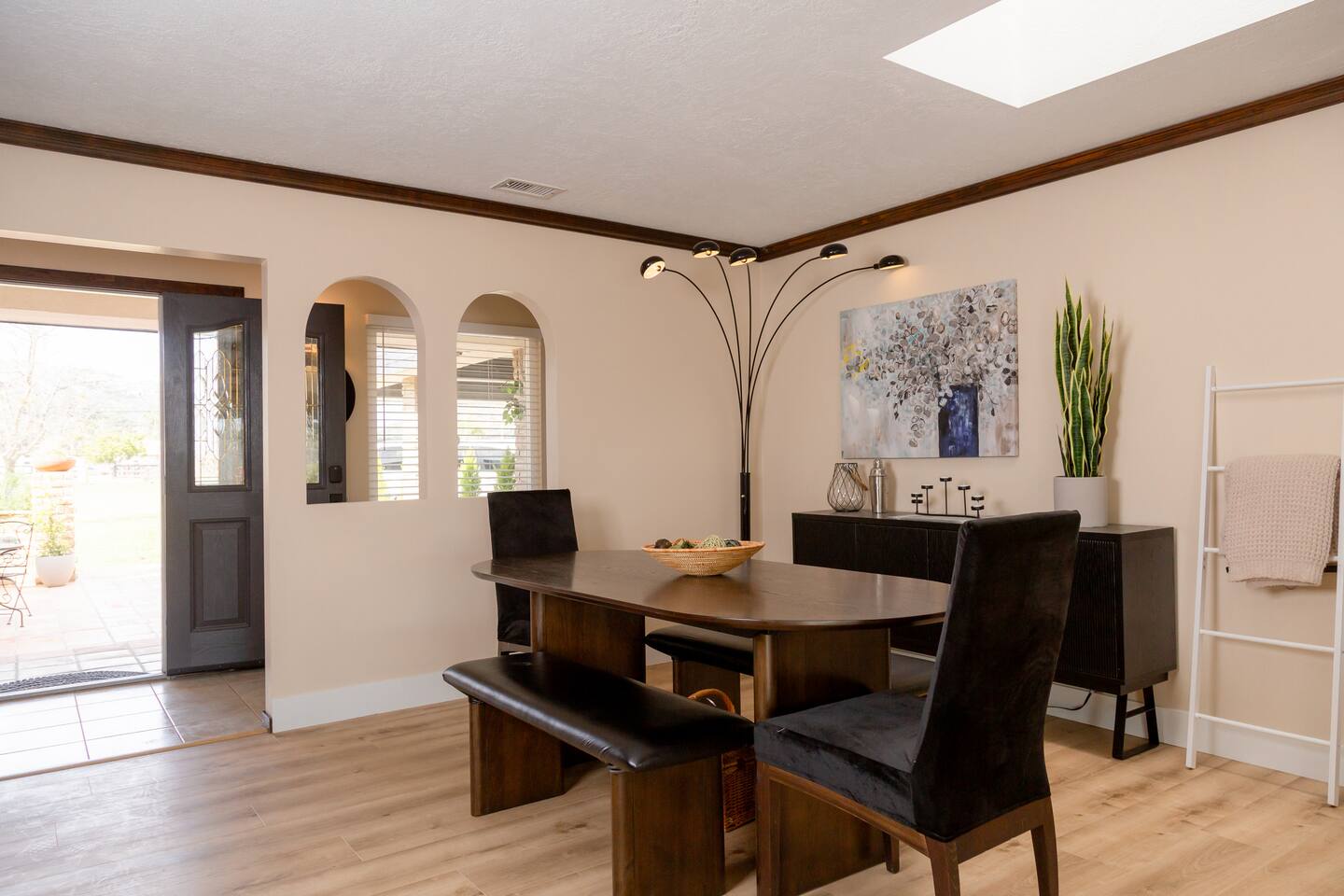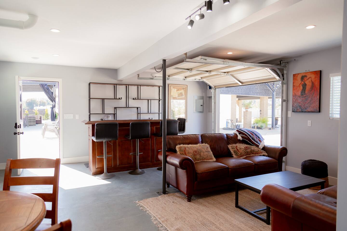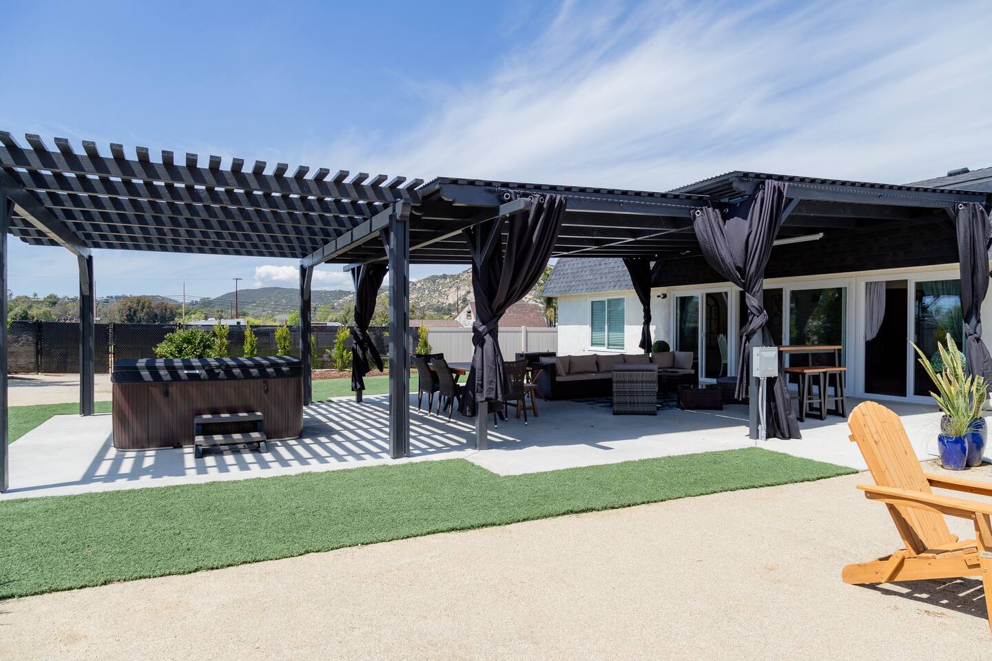 Welcome to Rainbow Canyon Retreat in North San Diego County! This beautifully renovated home sleeps 16 and boasts stunning views, a massive outdoor living space (hot tub, fire pit, bbq, projector) a huge speakeasy bar area and games room (pool, pinball, darts) and a separate apartment with en suite bathroom and full kitchen. It is the perfect destination for large groups and extended families looking to get away from the hustle and bustle but still be close to all the action. We are just 5 minutes from Temecula where you can shop, eat or go wine tasting at some amazing vineyards. We are also 35 minutes away from San Diego Zoo, Legoland, and the sunny beaches of Carlsbad & Oceanside. Fallbrook itself is a charming village with a picturesque Main St with wonderful shops and restaurants. There are several local wineries, great hiking, biking etc or just enjoy a peaceful visit in this beautiful home.