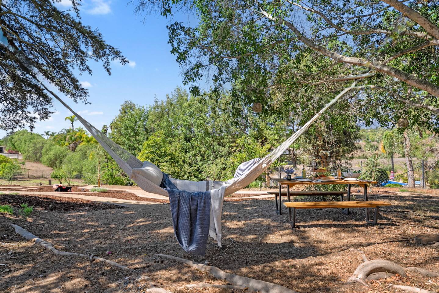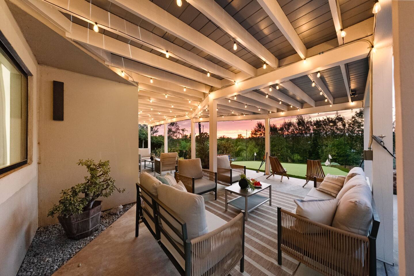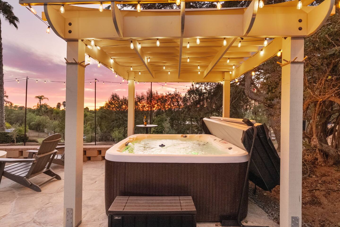 ★NEW LISTING!★ Sunset Ridge Retreat is your own private wine country, luxury getaway! Perfect retreat for a girls trip, bachelorettes, families, friends & couples for the ultimate resort like atmosphere. ★THE LOCATION★ Just minutes from the charming Main St of Fallbrook and the award-winning wineries of both Fallbrook and Temecula, you’ll be at the center of Southern California’s finest offerings. Spend the day wine tasting, golfing, hiking, horseback riding or hot air ballooning—or take a quick drive to San Diego’s 75 miles of coastline, world-famous zoo, or theme parks. Whether you crave adventure or serenity, Sunset Ridge is the perfect base. Centrally located close to the 15 Freeway and the 76 Freeway. Nearby Highlights: Fallbrook Winery - 1.5 miles away (walkable!) Monserate Winery - 5.2 miles away Los Willows - 7.7 miles away Grand Tradition Estates - 3.8 miles away Temecula - 14 miles away Oceanside - 18.3 miles away Pechanga Casino - 15.8 miles Pala Casino - 13 mile Legoland – 21.8 miles San Diego Zoo – 52 miles Wild Animal Safari Park - 33 miles Disneyland – 80.2 miles ★THE PROPERTY★ Sunset Ridge is exclusively yours! Very private and surrounded by stunning mountain and vineyard views. Lounge by the pool, sip a glass of wine in the hot tub or by the firepit, float in the hammock with a book while watching the sun descend behind the mountains. Please note: This is not a party house. We strictly enforce the local noise ordinance and work hard to maintain the chill vibe of the surrounding area. ★ Home Highlights ☆Gorgeous Swimming Pool with Multiple Waterfalls ☆Heated Hot Tub (at 101 on demand) ☆Game Room with Smart TV ☆Mini Putt area ☆Foos Ball ☆Hammock ☆Ping Pong table ☆Rowing Machine ☆Firepit ☆Meditation Paths ☆Yoga Mats ☆Multiple Outdoor Seating/Lounging Areas ☆Art area for painting and drawing ☆Cornhole ☆Board games, puzzles and children toys ☆Giant Connect Four and Jenga ☆Free weights ☆Poolside seating ☆Outdoor dining table ☆ Coffee bar (coffee, creamer, sugar provided) ☆Private desk space ☆ High speed internet ☆Chef's Kitchen (fully equipped!) ☆Epic views ☆Picnic bench/area ☆4 Comfortable and carefully designed bedrooms which boast 5 star comforts (black out shades, sound machines, charging stations) ☆ 2 full bathrooms and one half bath ☆Multiple Living Rooms/Outdoor Lounge Areas ☆Newly Renovated with Designer Decor and Furniture ☆BBQ (w propane provided) ☆Huge Outdoor Deck and Lower Patio ☆ High-Speed Wi-Fi ☆Free Parking (ample parking for large groups) ☆Multiple seating areas (benches, hammocks, tables, chairs and lounge chairs) have been strategically placed for taking in the views ★ SLEEPING ARRANGEMENTS – 4 BEDROOMS/ Sleeps 10 - Sleeps 12 (if requested, with additional fees) ★ ☆ BEDROOM #1 - 1 King Bed (plus Queen sofa bed and two additional twin foam rollaway beds to be located wherever you desire - linens for extra beds in closet) ☆ BEDROOM #2 - 1 Queen Bed ☆ BEDROOM #3 - King Bed ☆ BEDROOM #4 - 1 King Bed (plus full size futon bed - linens in closet) ★ BATHROOMS ★ All bathrooms are stocked with towels (face, body, hand) and essential toiletries to ensure a carefree stay. There is one full bathroom upstairs for Bedrooms #1 & 2 and another 1/2 bath upstairs. Downstairs there is another full bathroom to be shared between Bedrooms #3 & 4. ★ KITCHEN & DINING ★ Chef’s kitchen with plenty of counter space and appliances to cook a gourmet meal ★ 2 LARGE LIVING ROOM SPACES ★ You will feel right at home! Take a moment to unwind, marvel at the amazing views from your choice of comfy sofa! ☆2 Living Rooms (one with Large Smart TV) ☆Throw Blankets ☆ Games and puzzles ☆Access to the Deck ★Outdoor Dining★ Ready to dine and wine with your loved ones or friends while the steak or burgers are on the grill! ☆Dining Table and Dining Bar ☆Propane BBQ (we supply the first tank!) ☆Outdoor Dining Plates and Glasses ★ GAME ROOM/GYM★ Ready for the excitement and challenge- come down to the game room/gym to play or get your sweat on! ☆Ping Pong Table ☆Foos Ball ☆Corn Hole ☆Large Smart TV to watch games ☆Jumbo Connect 4 ☆Jumbo Jenga ☆Rowing Machine ☆Exercise Bike ☆Yoga Mats ☆Weights ★ Pool - Pool can be heated to 80 degrees for an additional fee ($200/day - including 24 hours prior to arrival) Pool safety fence can be erected for $75 fee with 72 hours notice. ★ Private ☆Excellent neighborhood for walking and many hiking trails throughout the area. ★ Kid Essentials- Ready to unwind while kiddos are entertaining themselves. ☆Games & Books ☆Play and Travel Crib ☆Baby Dining Chair ☆Dining Plates/Utensils Other than the already mentioned amenities, our home also comes with the following: ☆Air Conditioning & Heating ☆Laundry Room (Washer/Dryer, Iron/Board, Detergent) ★ Ready to book★ Grab your dates now (before someone else does). Please let us know if you have any questions regarding Sunset Ridge. We are happy to help! Thanks for visiting and happy travels!